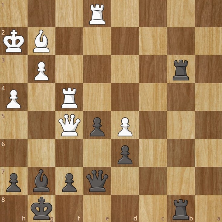 IM Yaacov's Hint: This was a cool game I came across with Carlsen as the white pieces and the very strong GM Peter Svidler as the black. Carlsen is +1000 light, Svidler +1000 dark. Carlsen's last move was Qf5 (light!), but it leaves an opening to a crushing dark rejoinder. In time pressure, Svidler missed this – let's try to find!